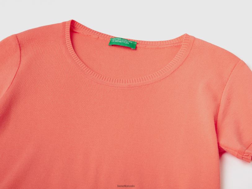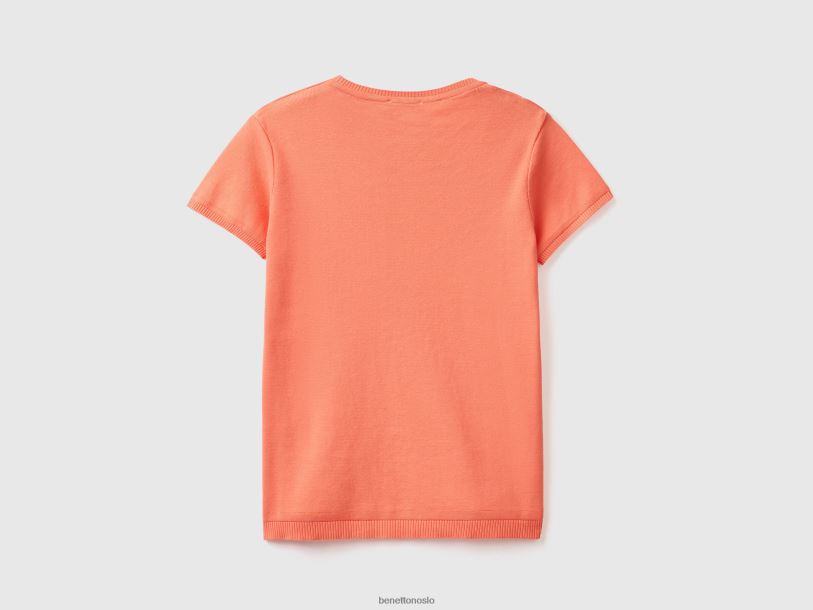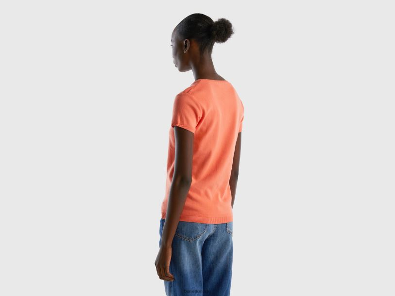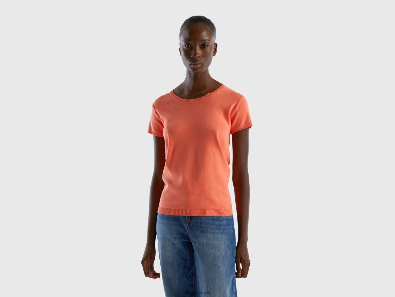 oransje Benetton kvinner kortermet genser i 100 % bomull 20TRB3575