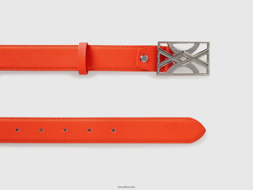 oransje Benetton kvinner t-skjorte i ren bomull med v-hals 20TRB379