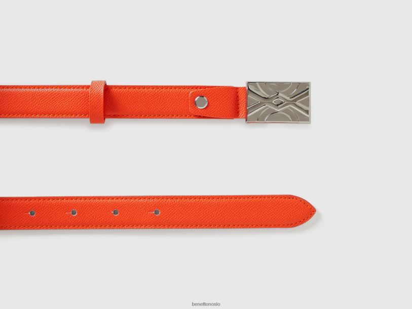 oransje Benetton kvinner t-skjorte i ren bomull med v-hals 20TRB379