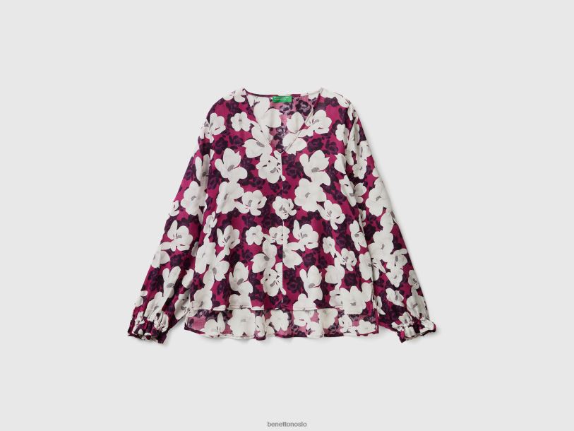 rød Benetton kvinner flytende blomstrende bluse 20TRB3993