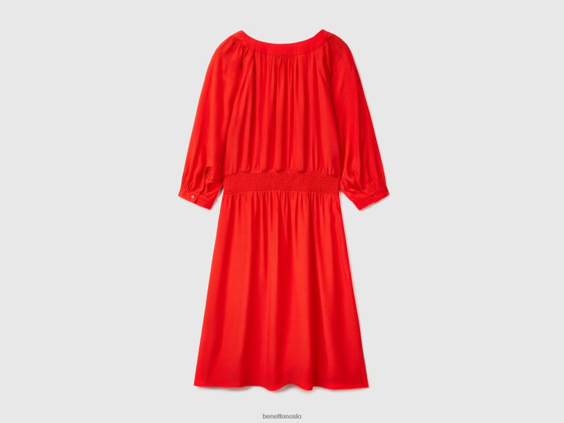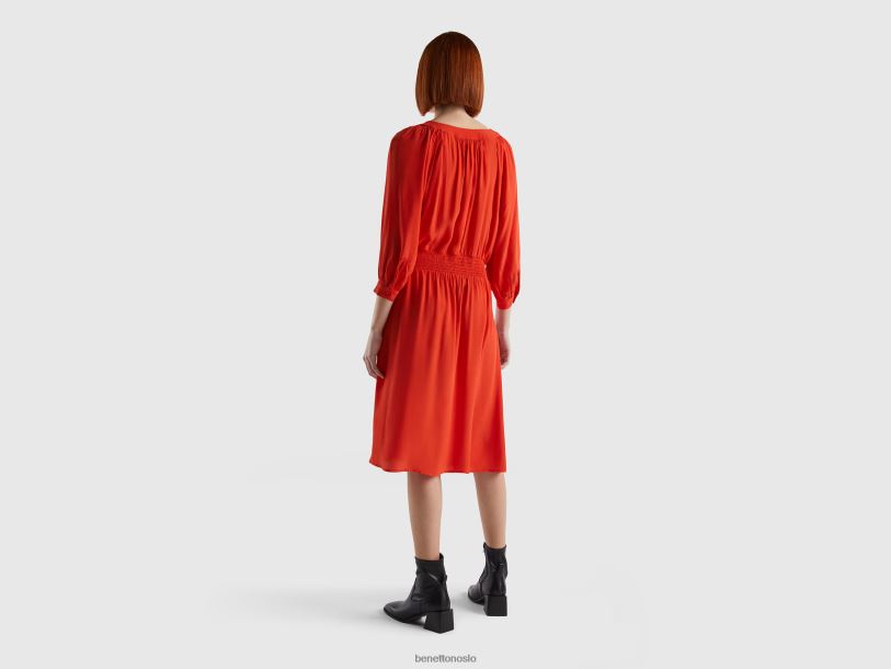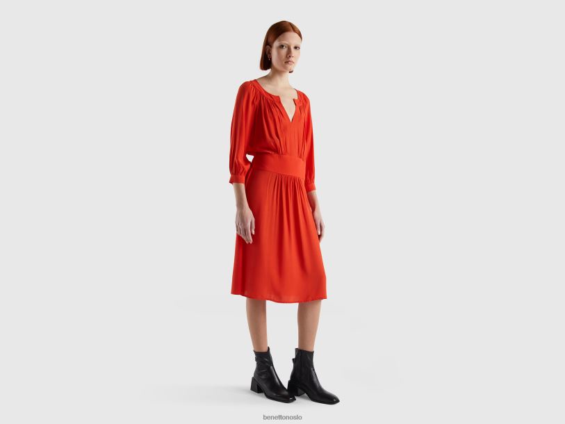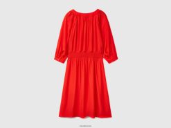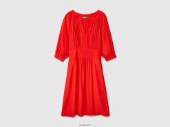 rød Benetton kvinner V-hals kjole i ren viskose 20TRB4008