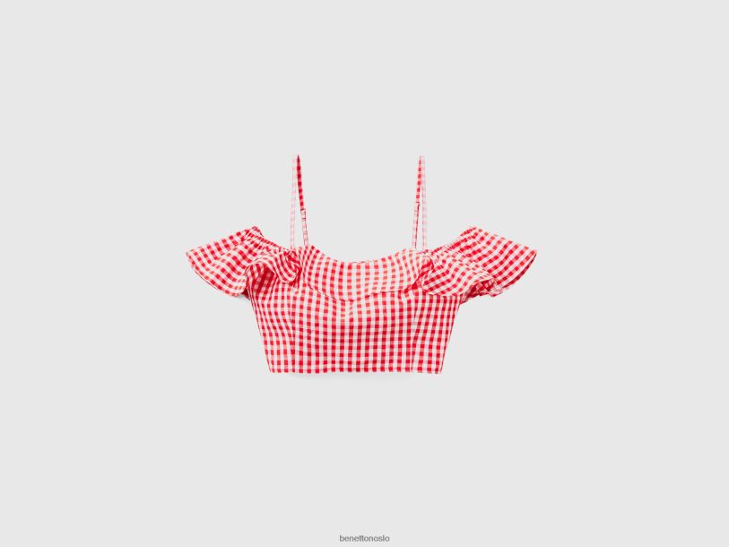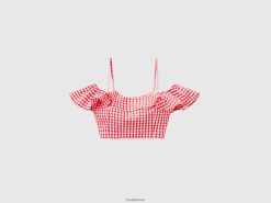 rød Benetton kvinner vichy crop topp med volanger 20TRB3788