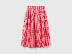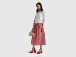 rød Benetton kvinner vichy-skjørt i linblanding 20TRB695