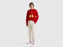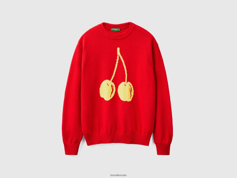 rød Benetton menn rød genser med kirsebærinnlegg 20TRB1122