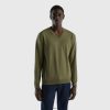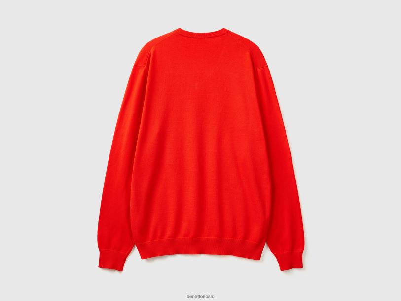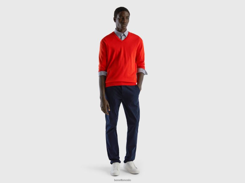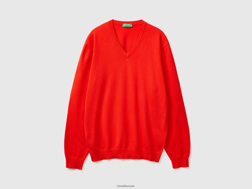 rød Benetton menn v-halset genser i ren bomull 20TRB1141