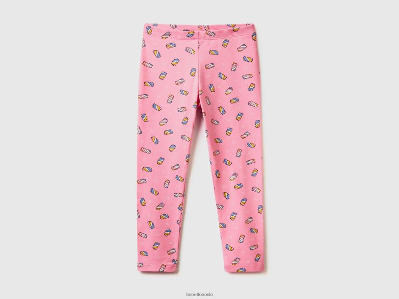 rosa Benetton barn mønstrede leggings i bomull i stretch 20TRB2973