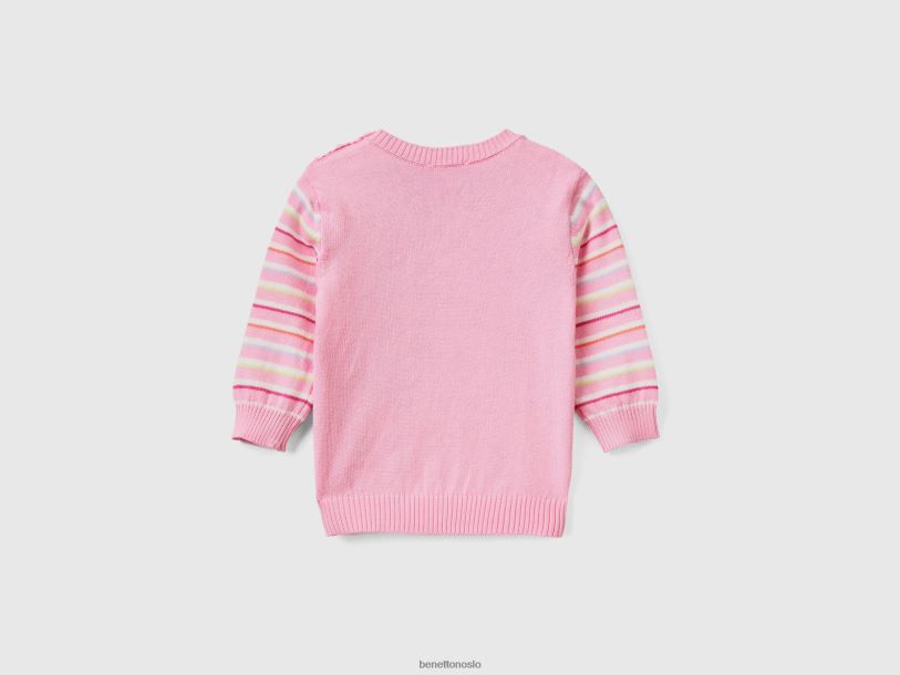 rosa Benetton barn stripete genser i ren bomull 20TRB3466