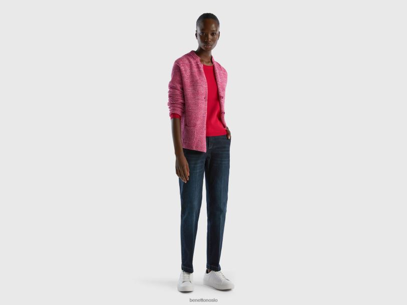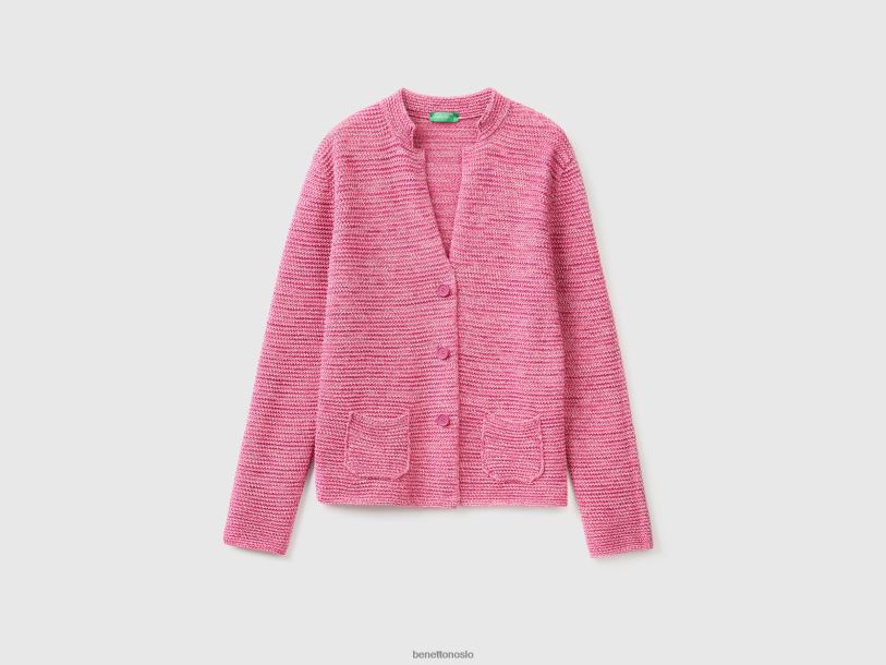 rosa Benetton kvinner 100 % strikket jakke i bomull 20TRB3555