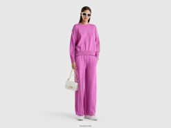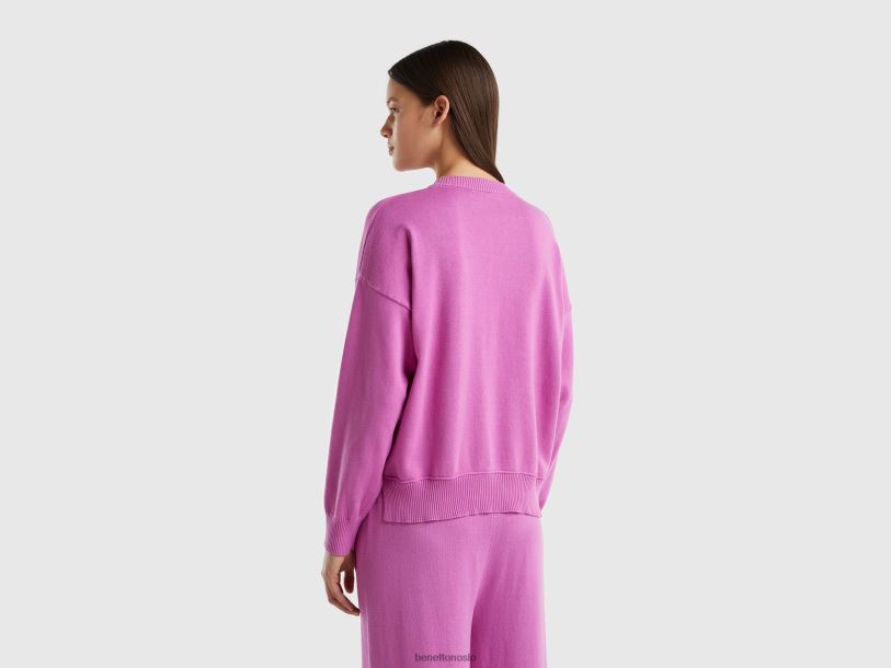 rosa Benetton kvinner genser med rund hals i trikotbomull 20TRB123