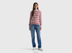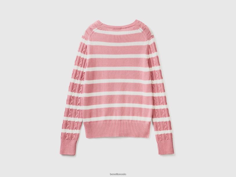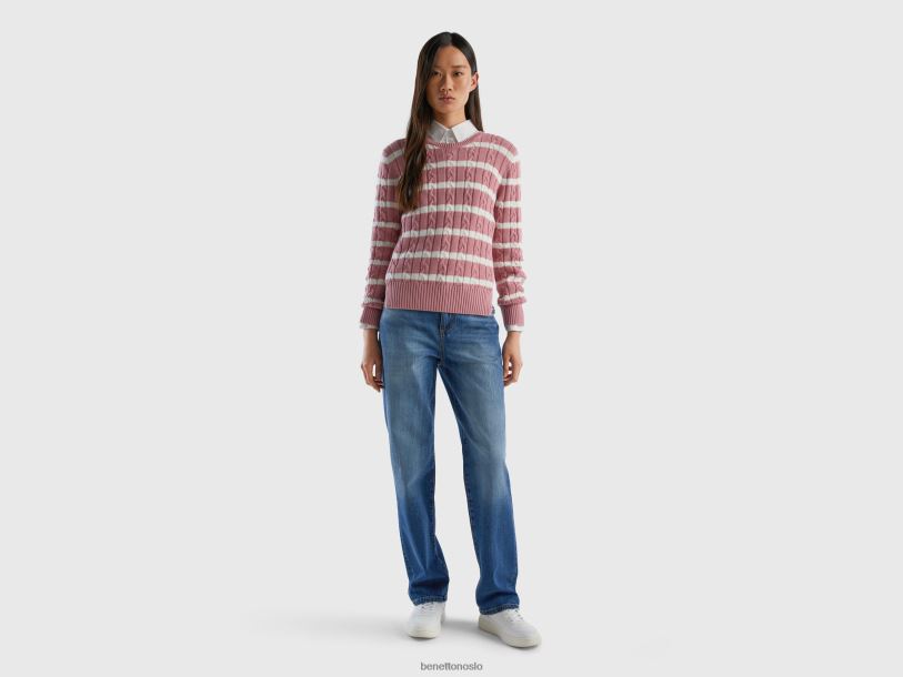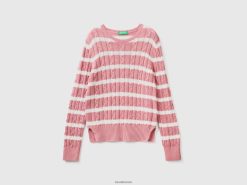 rosa Benetton kvinner kabelstrikket genser 100% bomull 20TRB151