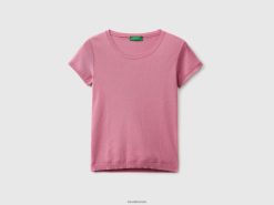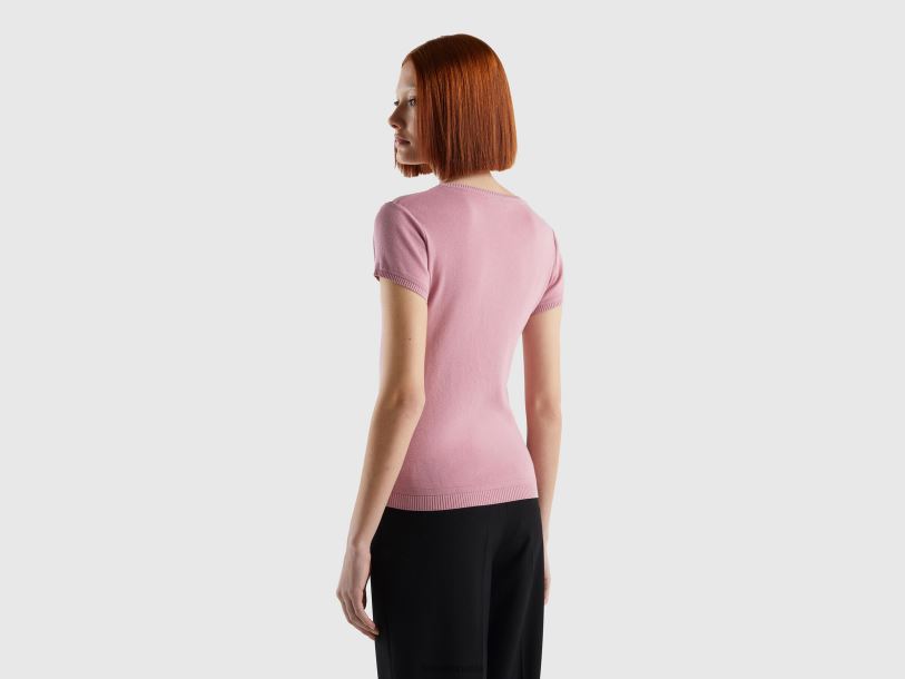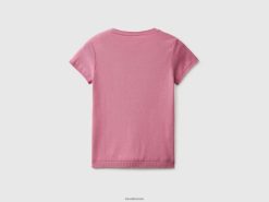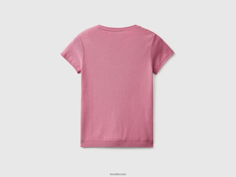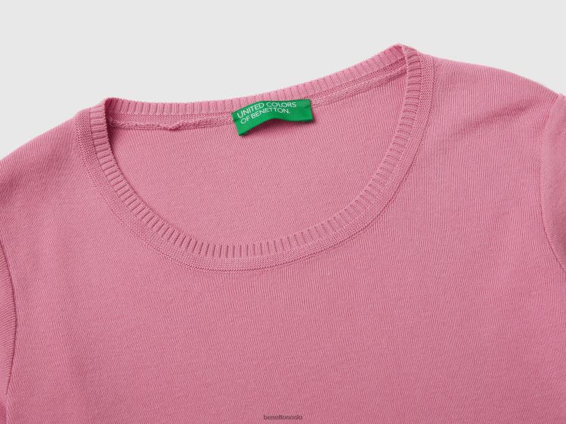 rosa Benetton kvinner kortermet genser i 100 % bomull 20TRB3637
