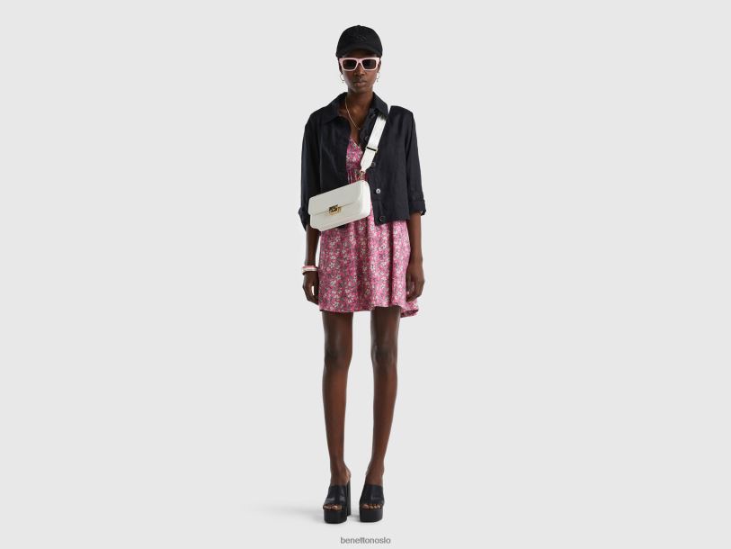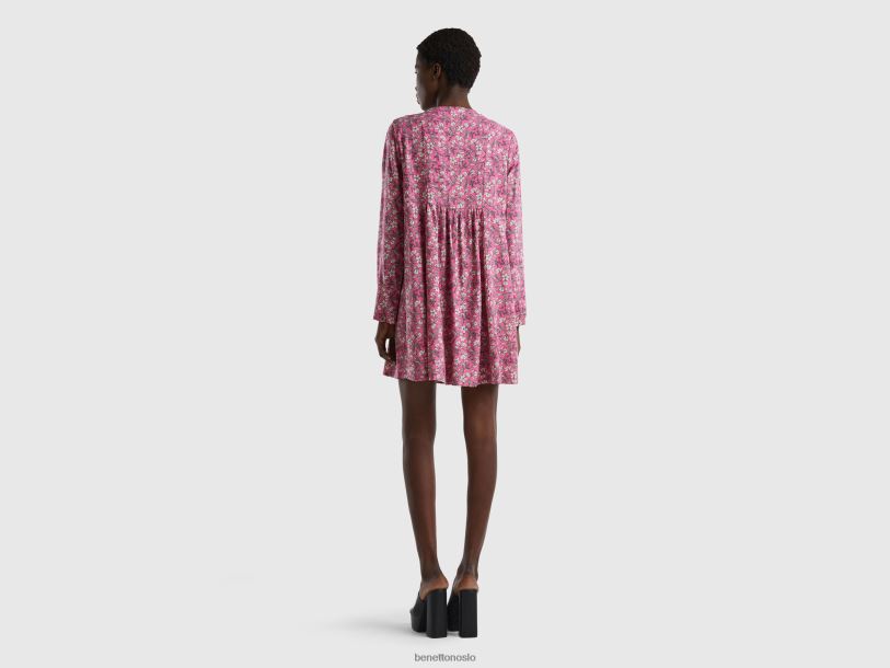 rosa Benetton kvinner mønstret kjole i bærekraftig viskose 20TRB553
