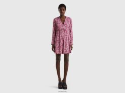 rosa Benetton kvinner mønstret kjole i bærekraftig viskose 20TRB553