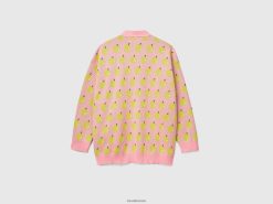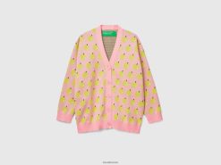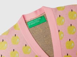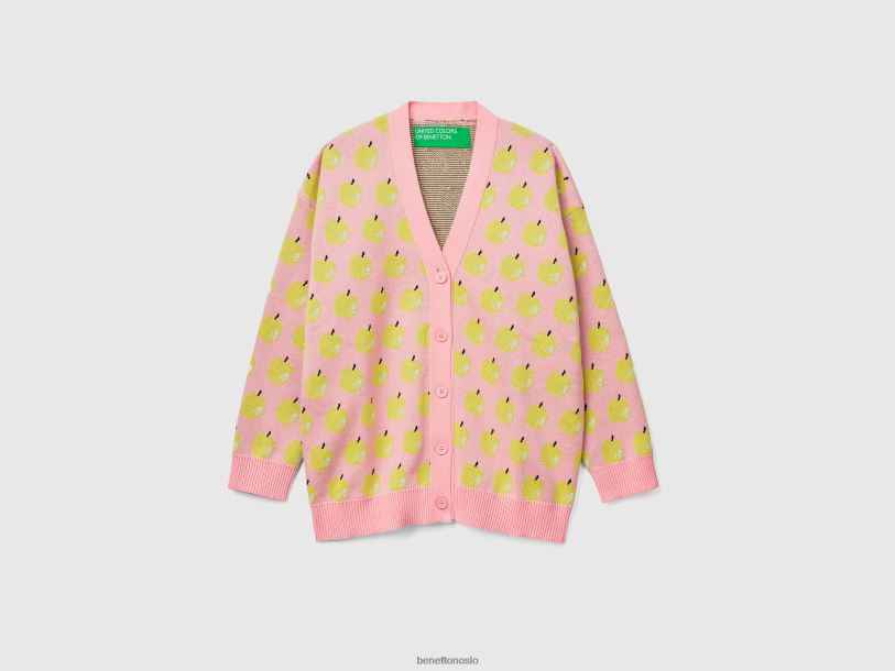 rosa Benetton kvinner rosa cardigan med eplemønster 20TRB47