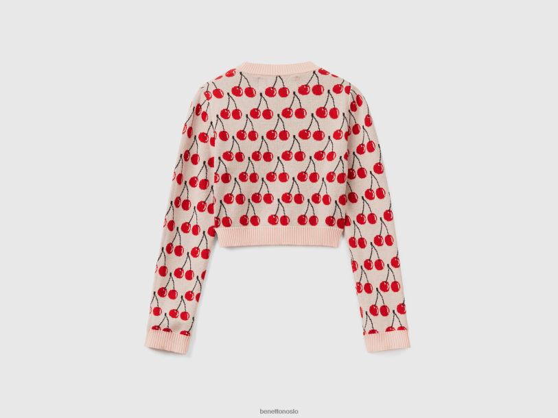 rosa Benetton kvinner rosa cropped genser med kirsebærmønster 20TRB139