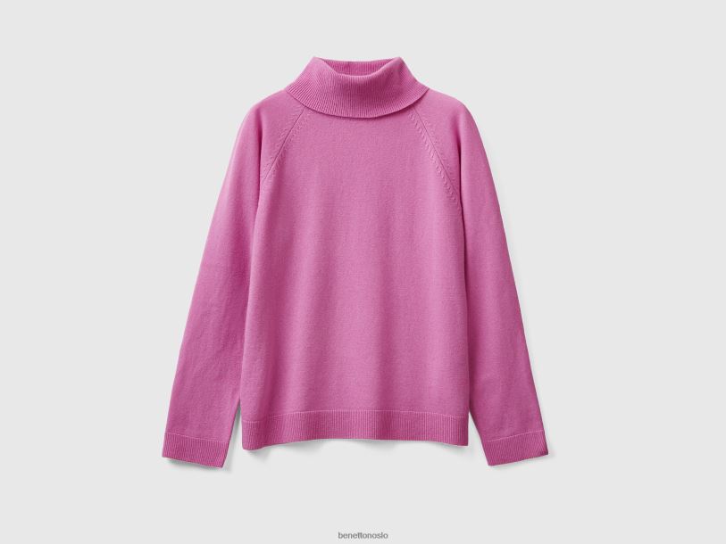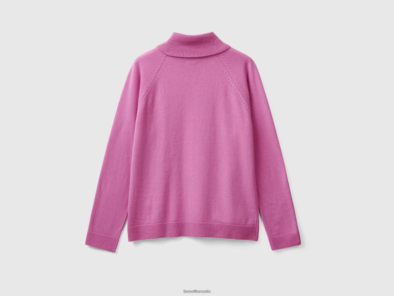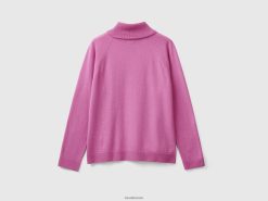 rosa Benetton kvinner rosa turtleneck i ull- og kashmirblanding 20TRB91