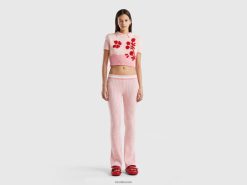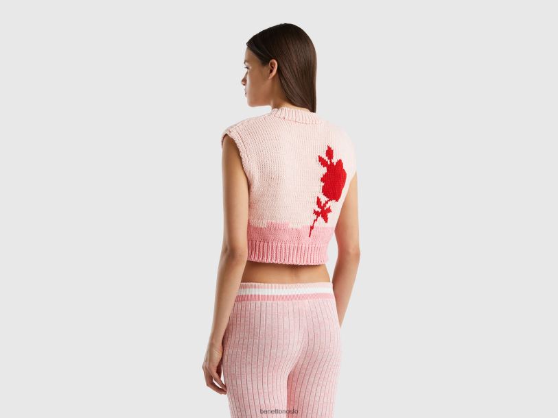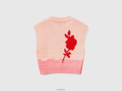 rosa Benetton kvinner rosa vest med blomsterinnlegg 20TRB3612