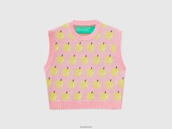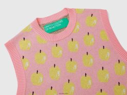 rosa Benetton kvinner rosa vest med eplemønster 20TRB53