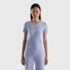 rosa Benetton kvinner t-skjorte i ren bomull med v-hals 20TRB3874