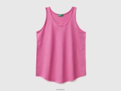 rosa Benetton kvinner tank topp i lett bomull 20TRB3805