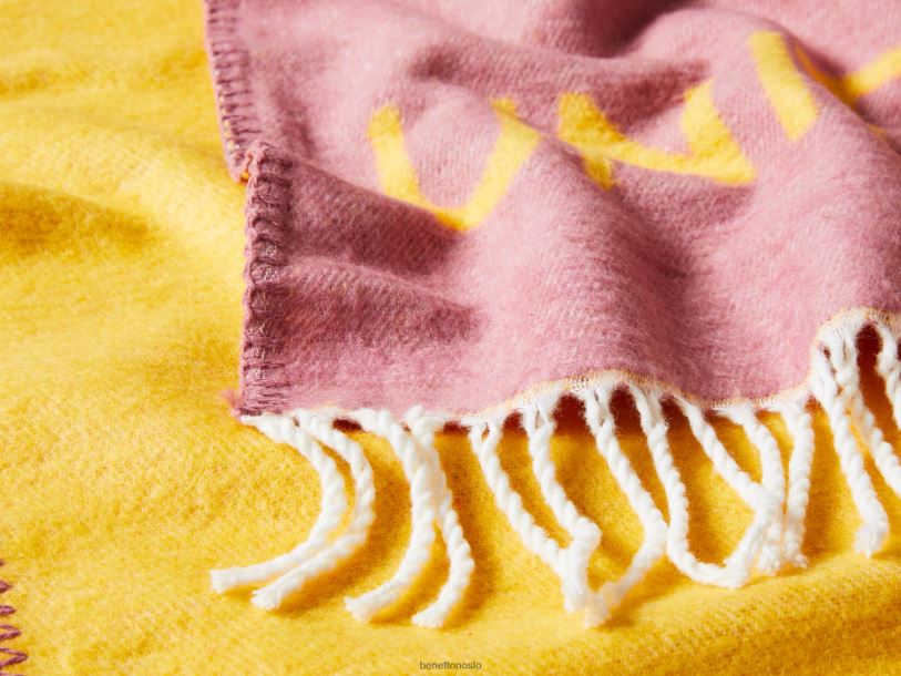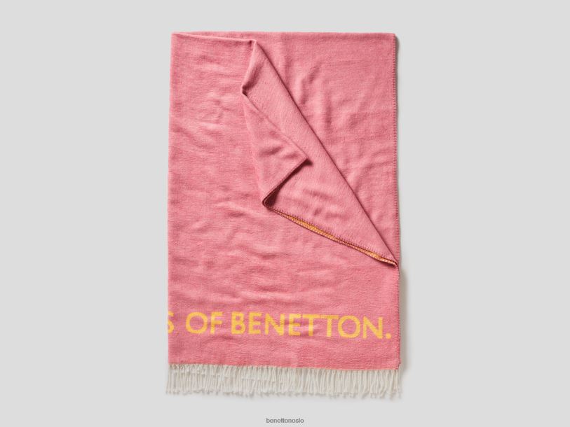 rosa Benettonfrynsete teppe med logo 20TRB3375