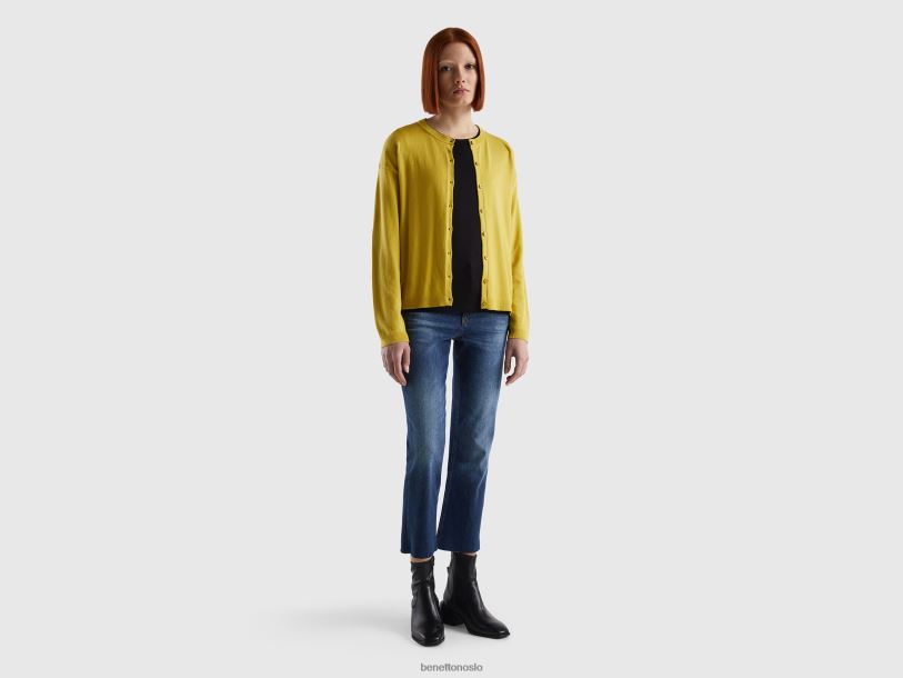 sennep Benetton kvinner cardigan med rund hals og knapper 20TRB3587