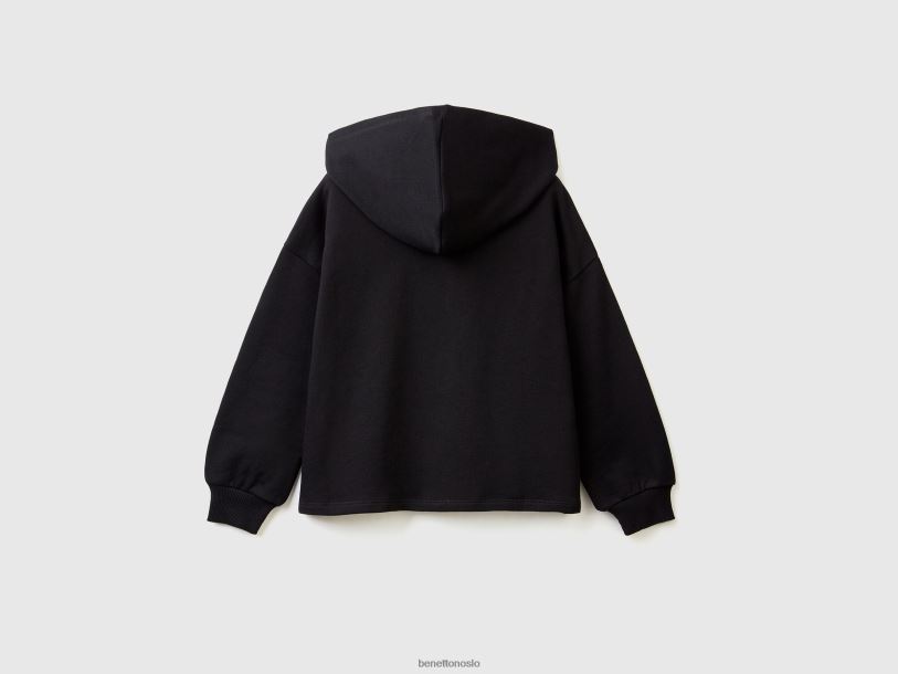 svart Benetton barn cropped sweatshirt med hette 20TRB2530