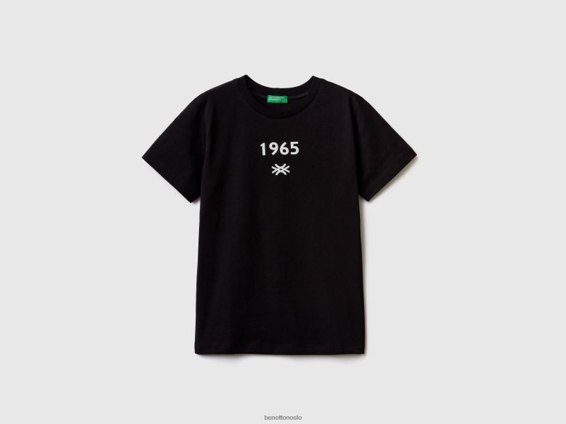 svart Benetton barn T-skjorte i 100 % økologisk bomull med logo 20TRB1735