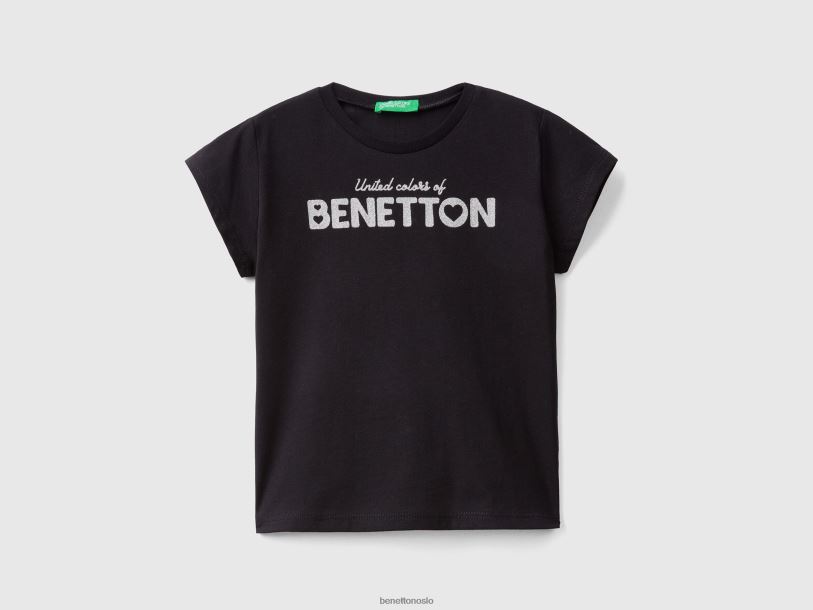 svart Benetton barn T-skjorte i økologisk bomull med trykk 20TRB2846