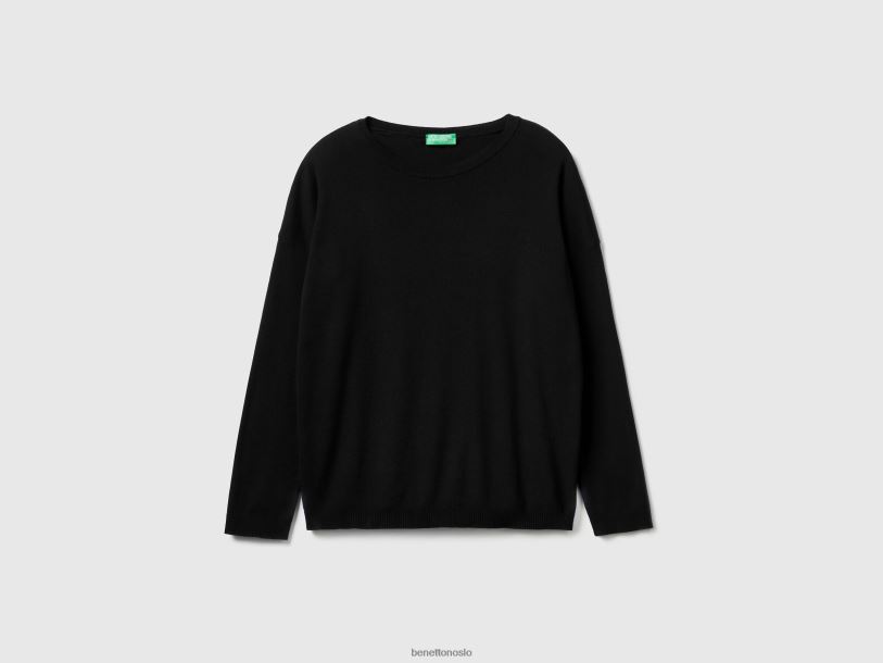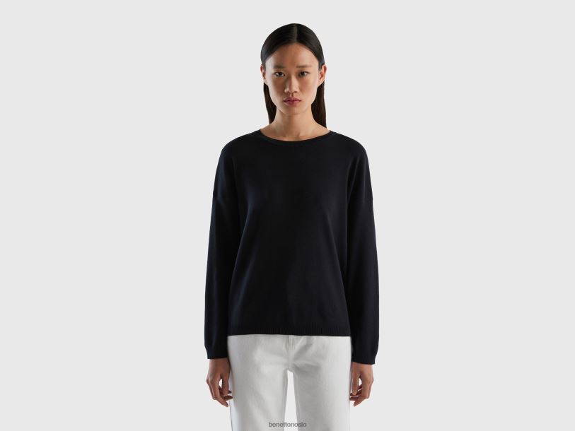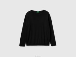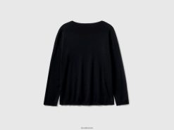svart Benetton kvinner bomullsgenser med rund hals 20TRB3656