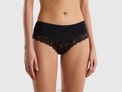svart Benetton kvinner brasiliansk stretchundertøy med blonder 20TRB4294