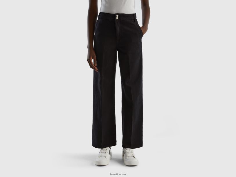 svart Benetton kvinner bukser med høy midje og vidde ben 20TRB4146