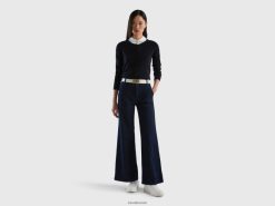 svart Benetton kvinner cardigan med rund hals i ren bomull 20TRB223