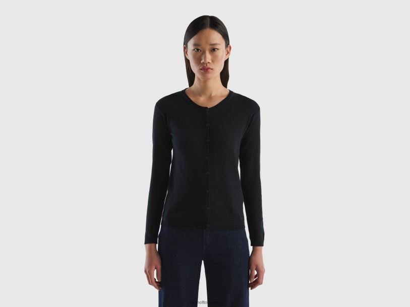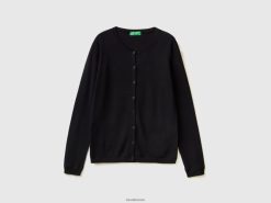 svart Benetton kvinner cardigan med rund hals i ren bomull 20TRB3698