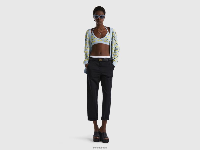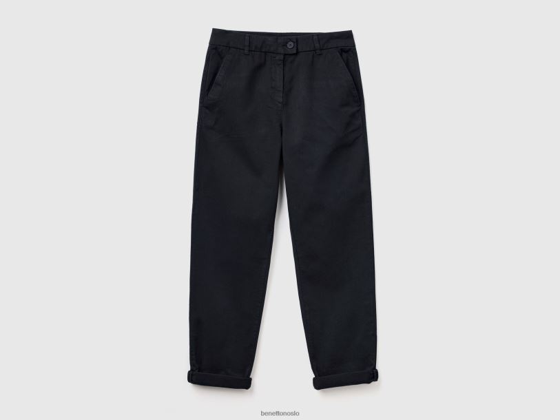 svart Benetton kvinner chinobukser i stretch i bomull 20TRB4105