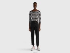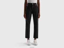 svart Benetton kvinner cropped jeans med høy midje 20TRB660
