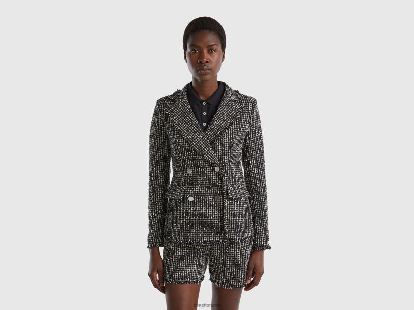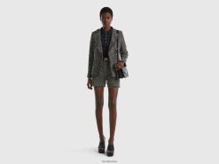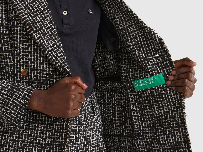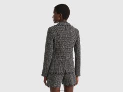 svart Benetton kvinner dobbeltspent blazer i tweed 20TRB3727