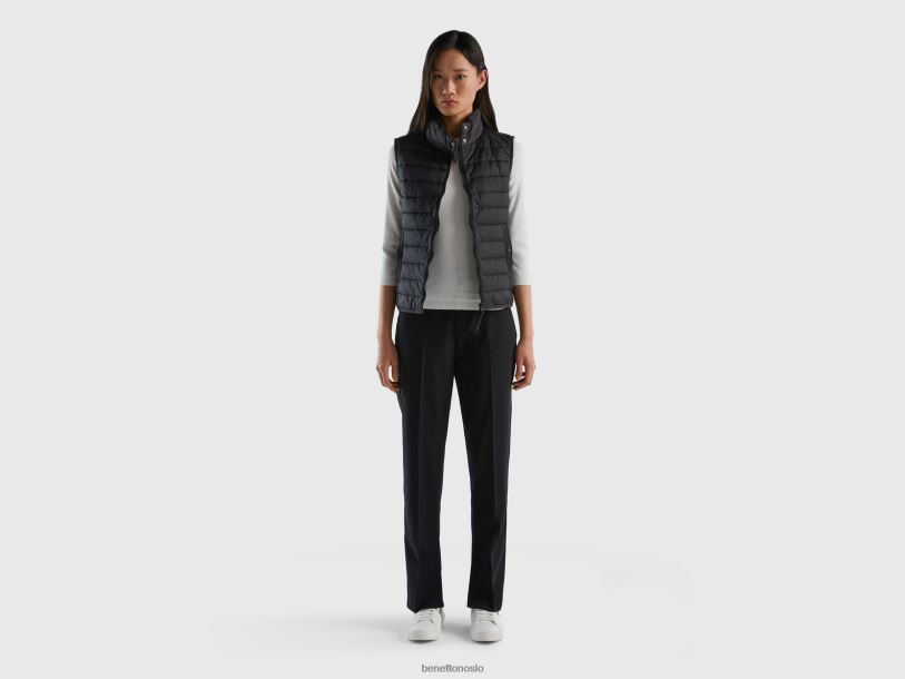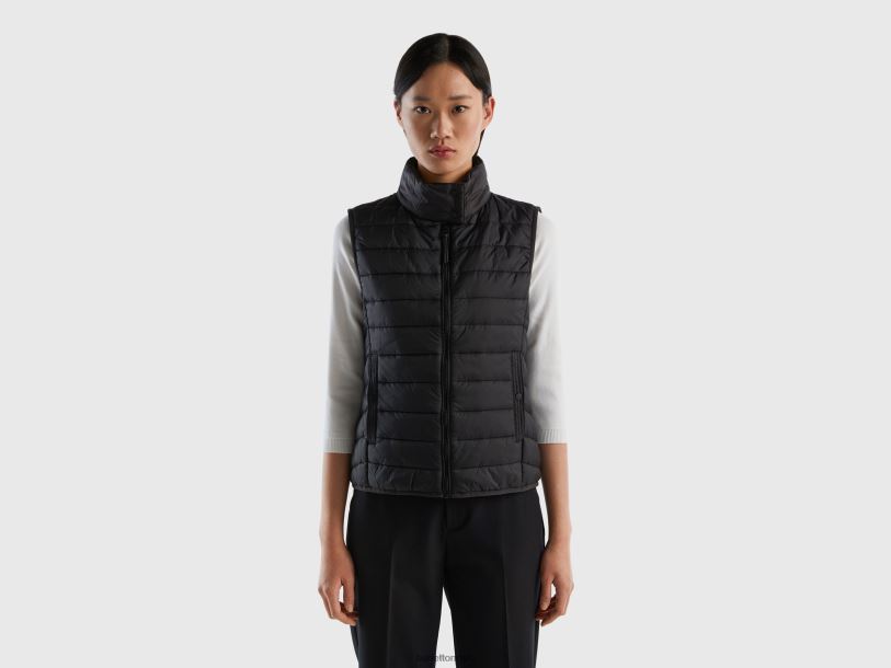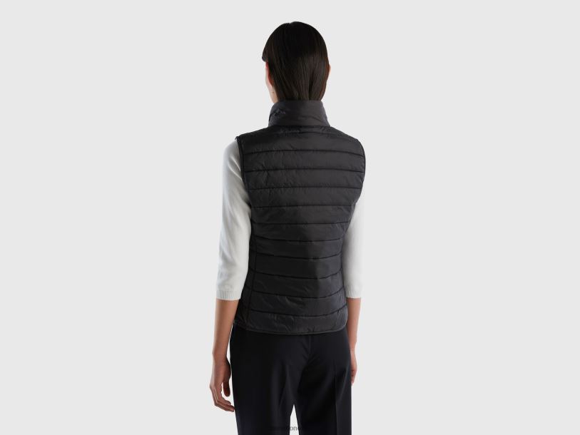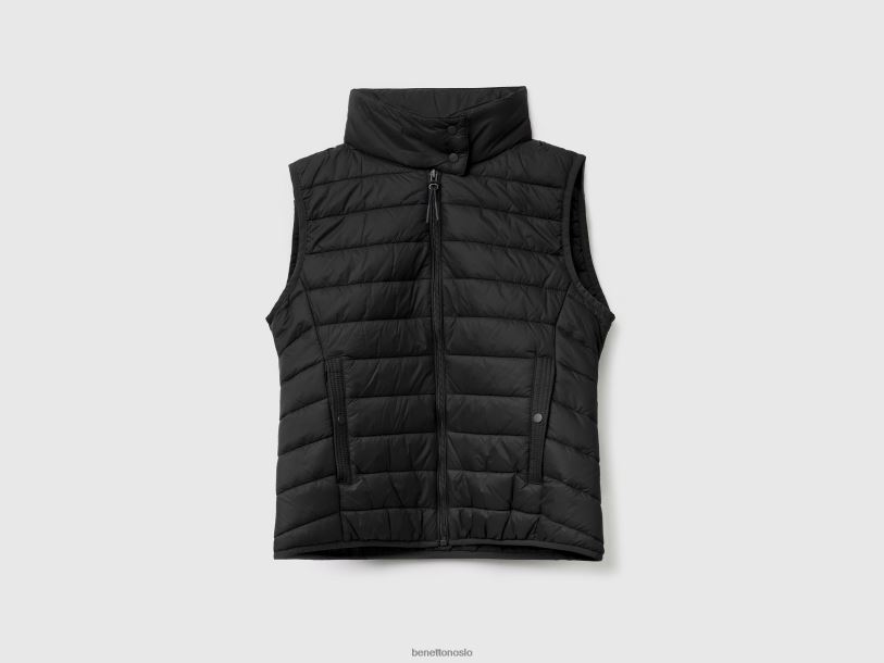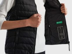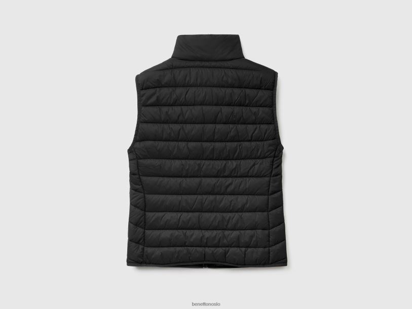 svart Benetton kvinner ermeløs pufferjakke med resirkulert vatt 20TRB3757