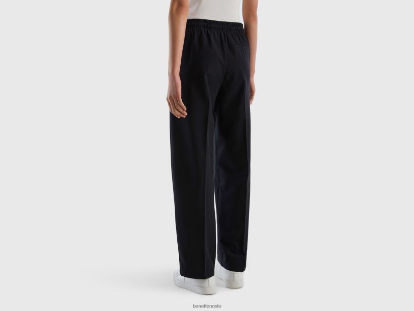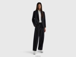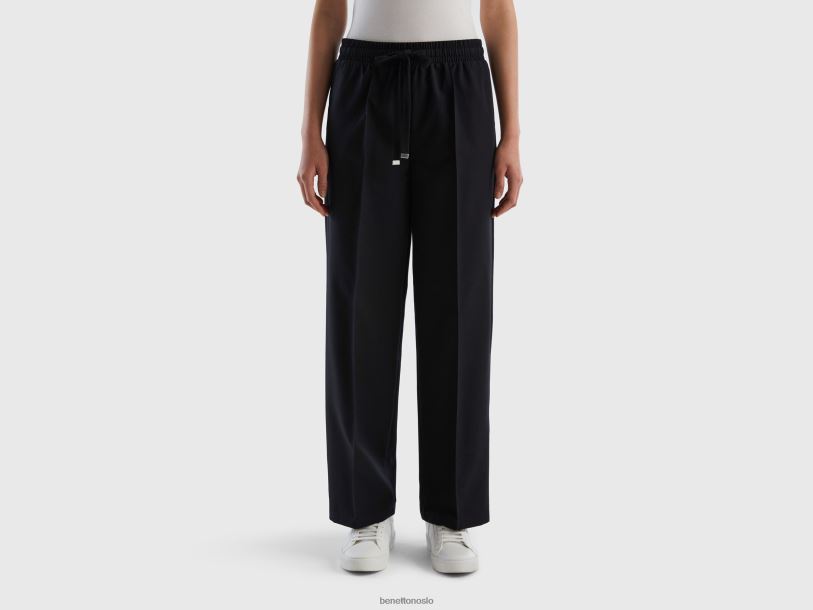 svart Benetton kvinner flytende bukse med snøring 20TRB562