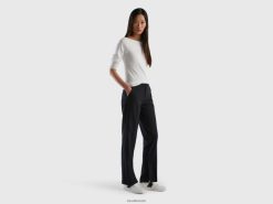 svart Benetton kvinner flytende bukser med splitt 20TRB4082