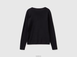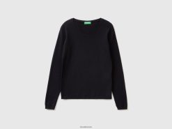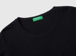 svart Benetton kvinner genser med rund hals i ren bomull 20TRB3701