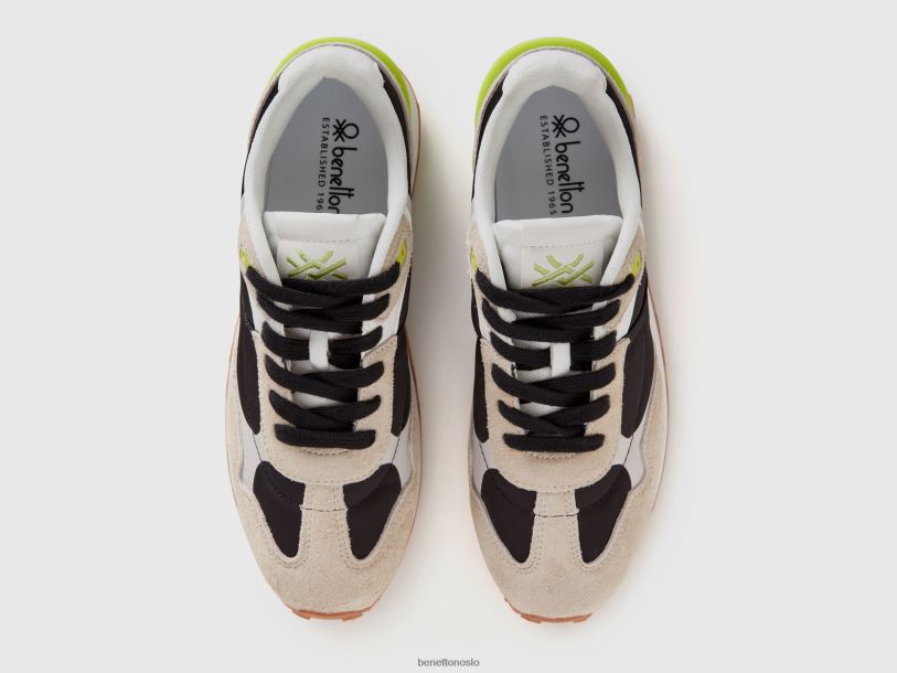 øvre 60 % stoff 40 % storfeskinn inni 100 % stoffsåle 100 % syntetisk