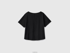 svart Benetton kvinner kortermet t-skjorte i lett bomull 20TRB338