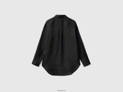 svart Benetton kvinner lang skjorte i rent lin 20TRB510