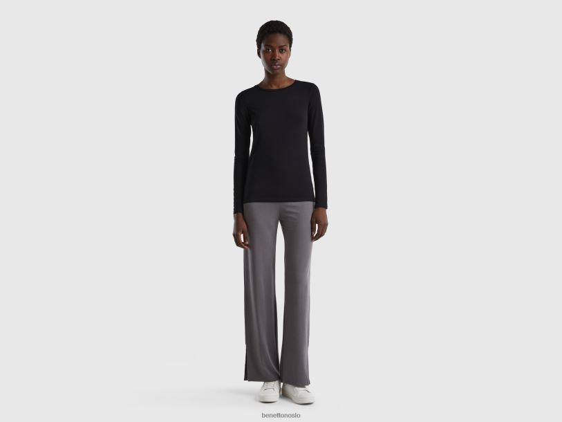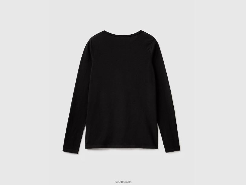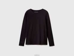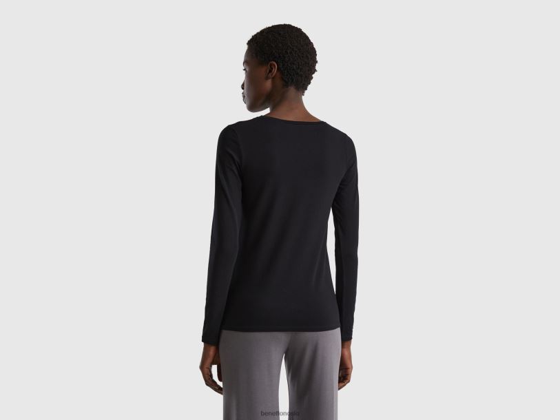 svart Benetton kvinner langermet super stretch t-skjorte 20TRB4210