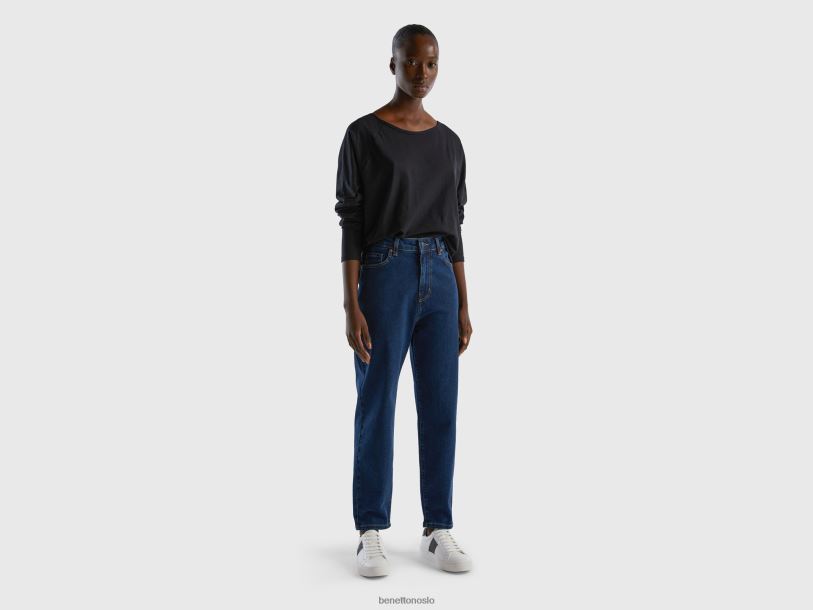 svart Benetton kvinner langermet t-skjorte i ren bomull 20TRB3818