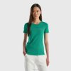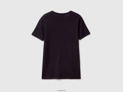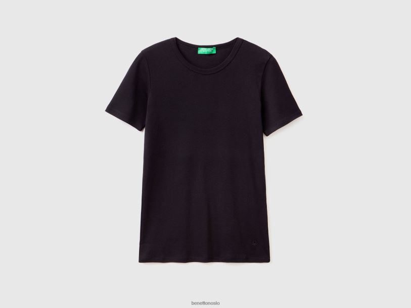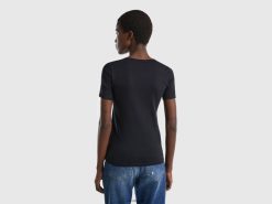 svart Benetton kvinner langfiber t-skjorte i bomull 20TRB467