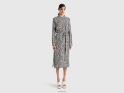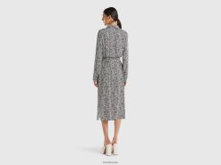 svart Benetton kvinner mønstret flytende skjortekjole 20TRB4028