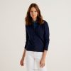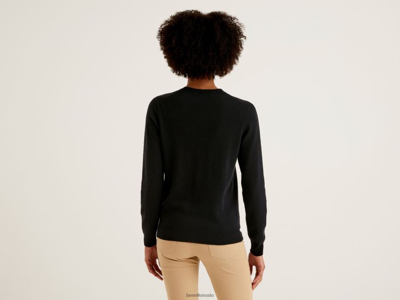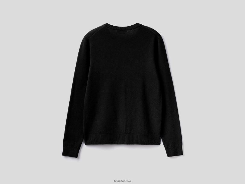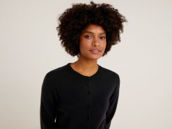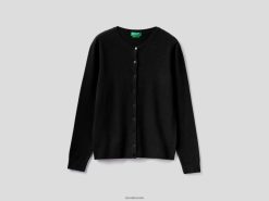 svart Benetton kvinner svart cardigan med rund hals i ren merinoull 20TRB3642
