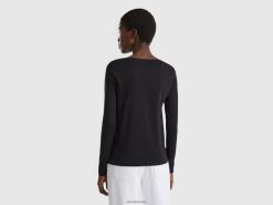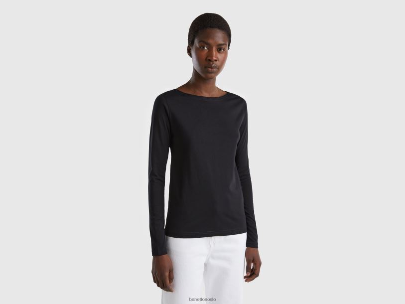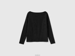 svart Benetton kvinner t-skjorte med båthals i 100 % bomull 20TRB419